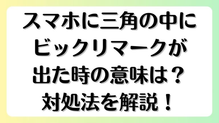 スマホの画面や通知バーに三角の中にビックリマークが出て不安になったことはありませんか。 このマークは、スマホが通信やシステムに関して何らかの異常を検知したときに表示されるサインです。 多くの場合は一時的な通信エラーや設定の問題で、落ち着いて対処すればすぐに解消できます。 この記事では、AndroidとiPhoneの違い、表示される主な原因、安全なケース、そして消すための具体的な対処法をわかりやすく […]
