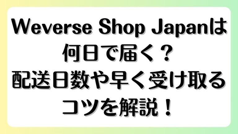 Weverse Shop Japanで注文した商品が「何日で届くのか」気になりますよね。 BTSやSEVENTEEN、ENHYPENなどのグッズを楽しみに待っていると、届くまでの時間が長く感じる方も多いはずです。 この記事では、Weverse Shop Japanの商品が届くまでの日数の目安や、配送を早めるコツ、遅延が起きる原因、トラブルを防ぐ方法まで詳しく解説します。 読めば、いつ・どうすれば早 […]