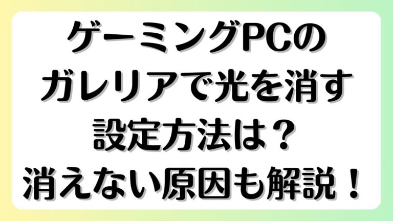 ゲーミングPCのガレリアで光を消す方法が分からず、まぶしさやストレスを感じていませんか。 ガレリアのLEDは設定次第で消せる場合もあれば、モデルによっては消せないケースもあります。 この記事では、ゲーミングPCのガレリアで光を消す具体的な設定方法から、消せない原因、さらに代替対策まで分かりやすく解説します。 設定で解決できる方法と、どうしても消せない場合の対処法まで理解できるので、今より快適なPC […]