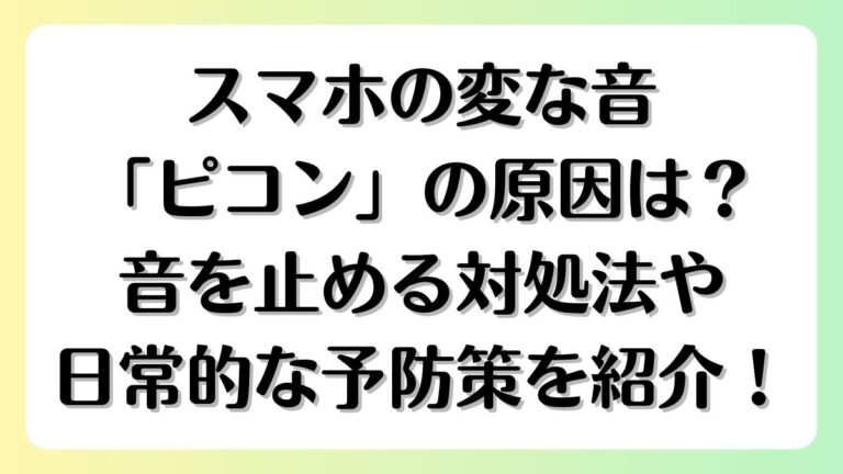 スマホから突然「ピコン」という変な音が鳴って驚いた経験はありませんか? 特に何も操作していないのに音が鳴ると、「ウイルス?」「故障?」と不安になりますよね。 実はこのピコン音には、通知設定やアプリの動作、Bluetooth接続など、いくつかの原因が存在します。 この記事では、スマホからピコンという音が鳴る主な原因と、その具体的な対処法を分かりやすく解説します。 AndroidとiPhoneの両方に […]